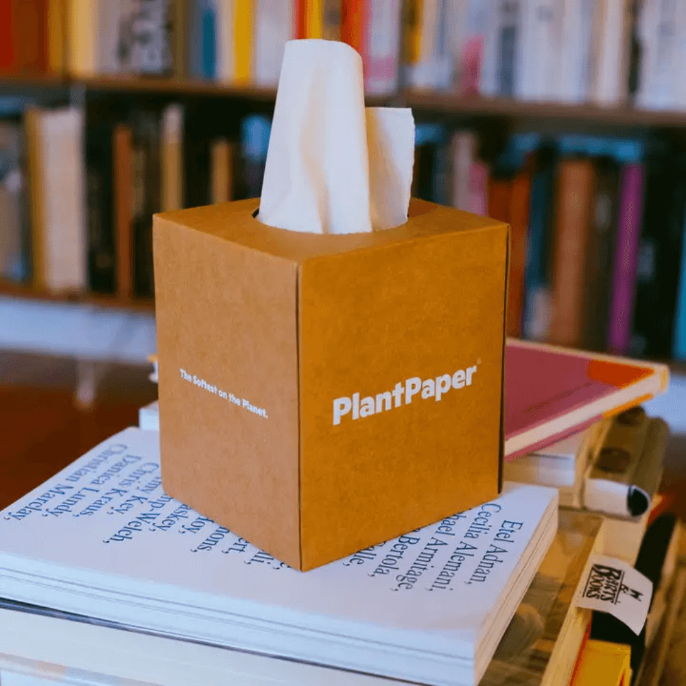 This facial tissue is 100% free of bleach, formaldehyde, and irritants with plastic-free packaging.